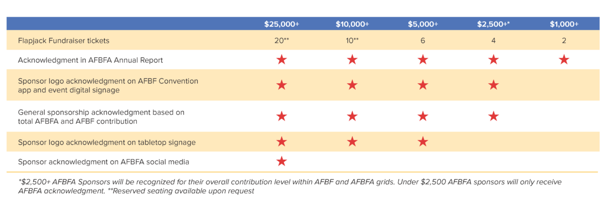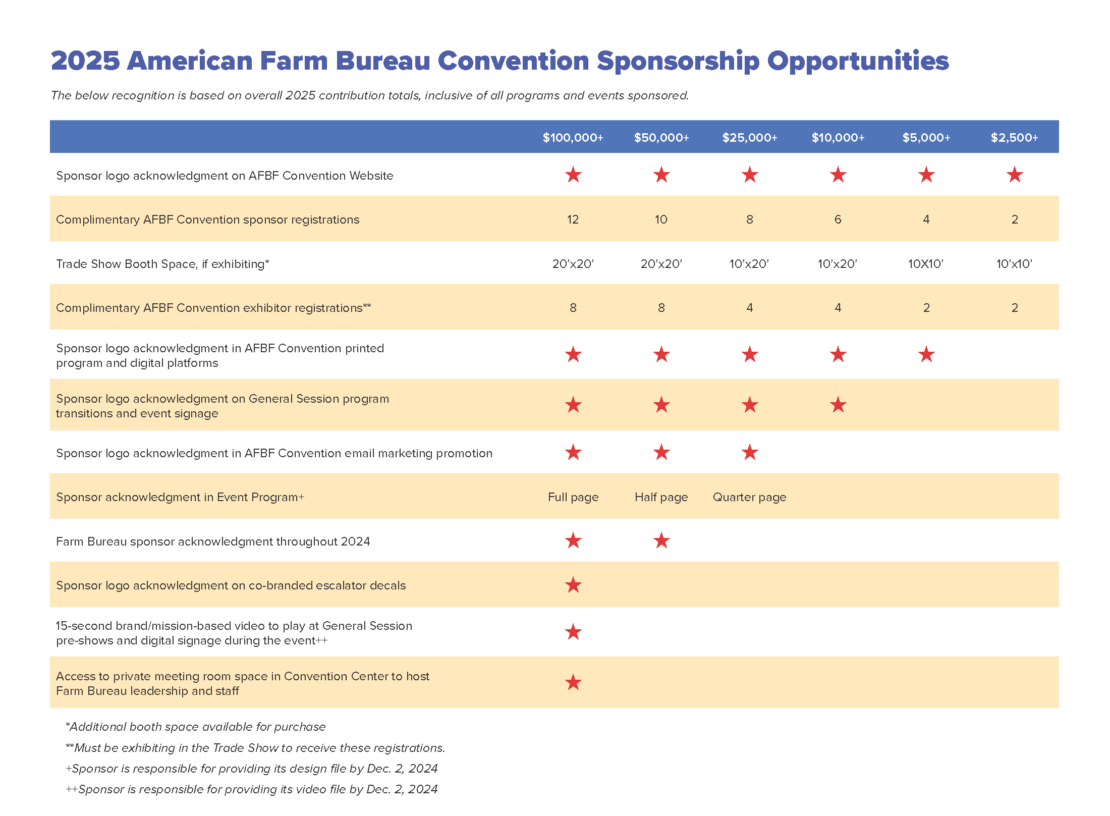 Invest $2,500 in the American Farm Bureau Convention and receive the following benefits:
